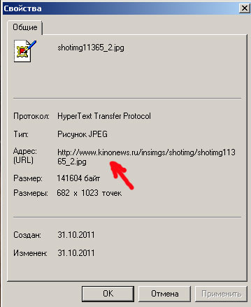 И вставить туда ссылку изображения, которое вы нашли в базе нашего портала. Внимание! Речь идет не о ссылке на страницу с картинкой, которая видна в адресной строке в вверхнем левом углу экрана, а о ссылке самого изображения. Она ищется в свойствах файла, которые вызываются правой кнопкой мыши: